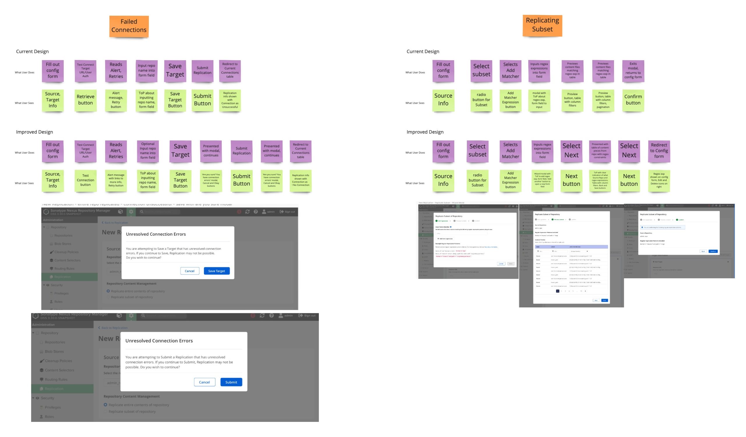 As the primary UX Designer for Nexus Repository Manager, we needed to enable copies of Maven and Raw repositories to be copied from a source to target instance. Many security teams rely on geolocated offices to access specific artifacts to help build open source software.